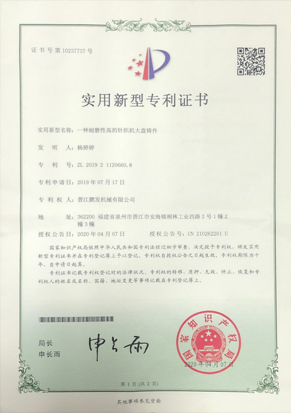 鵬發機械鑄造生產鞋機、大圓針織機、液壓機、數控機床、CNC加工中心配件。鵬發機械鑄造采用濕模砂、樹脂自硬砂、水玻璃砂、V法真空工藝、(消失)白模等多種鑄造工藝生產。鑄件材質有:多種牌號灰口鑄鐵、多種牌號球墨鑄鐵、鑄鋼件,同時也生產低合金鋼、高錳鋼等材質鑄件。員工120人,其中技術人員12人。具有雄厚的技術力量、先進的檢測儀器及完善的管理體系。現有設備:2T中頻感應電爐3套6爐,雙臂樹脂自硬混砂機3套,S114混砂機3套,V法真空鑄造生產線造型工作臺6站,拋丸、水力清理鑄件5套,退火設備1條,爐前鐵液質量管理儀,高頻紅外碳硫分析儀,微機高速分析儀,熔煉測溫儀,布氏、洛氏硬度計,金相、拉力試驗機,光譜儀等生產、檢測設備齊全。